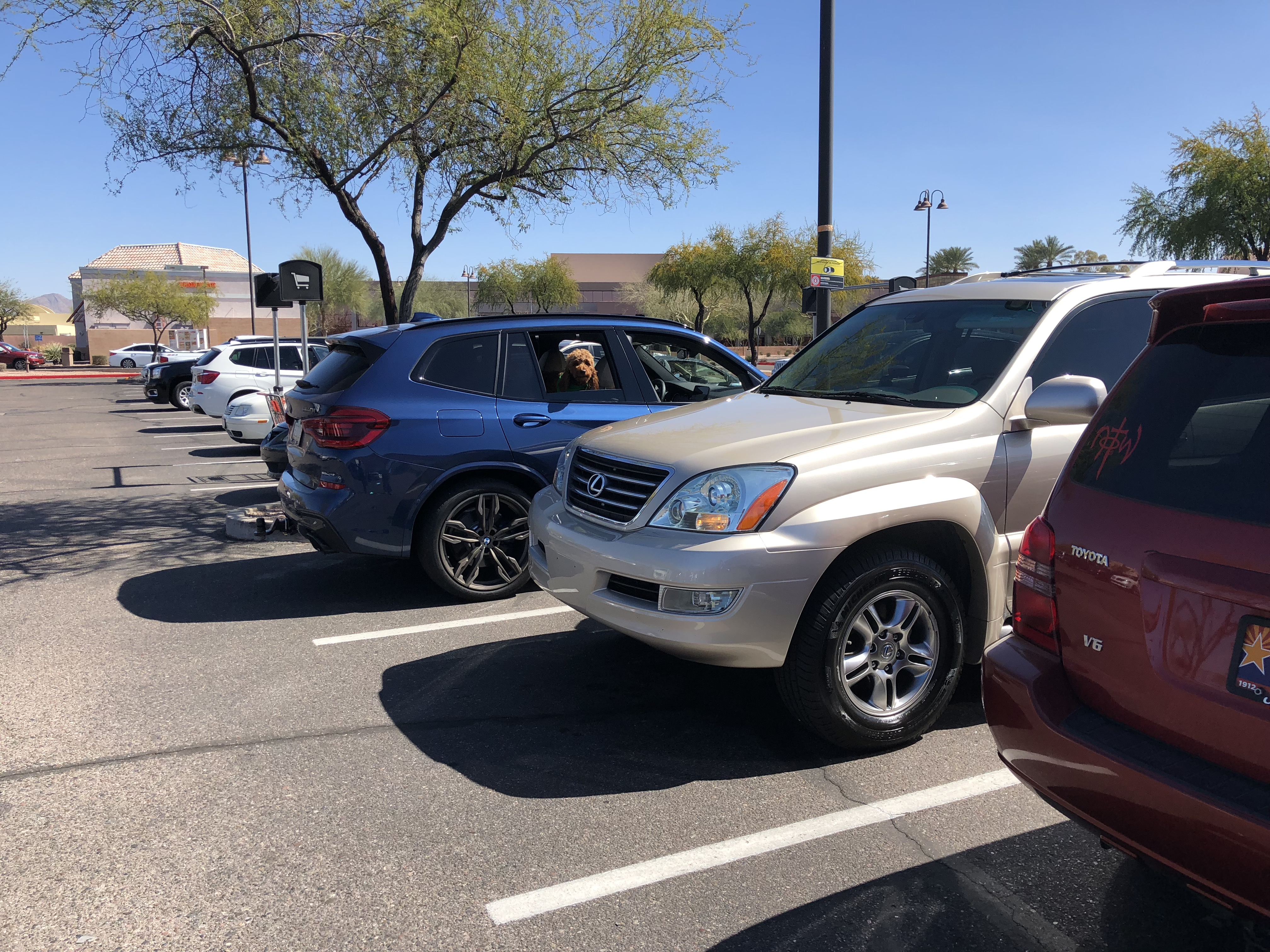 Any time we take Beckett to the store she is focussed on our return. Below is a view of what to expect when coming back. She stares continuosly in the direction she last saw you and waits until you return … even if it’s 30 minutes or more. She recognizes us when we get within about 100 feet of the car and she starts to get pretty excited.