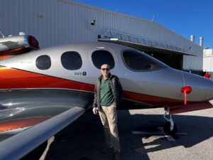 We then departed for Knoxville, TN.  The plane was going in to tune the paint scheme a bit.  Brian became quite helpful as a co-pilot in the Vision Jet.