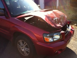 Driving home from Dallesport last night I encountered a deer at about 60 mph. I managed to drive about 2 miles down road to get to a spot where I could get picked up by Dave. No injuries or shocks to me or the other occupants (Pixie and Angle). I swerved a bit but did not slam on the brakes. Unfortunately my Zig exactly matched its Zag. Since it was night I couldn’t pick up the motion until it was too late.