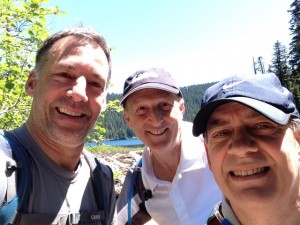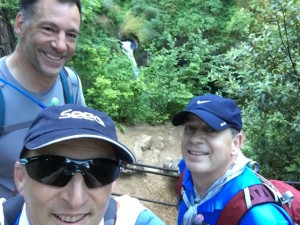Brian and I trained for this hike.  Brian did Horsetooth Trail (link) near Ft. Collins at 7,000 ASL which as 5 miles round trip with 1500′ elevation change.  He got to where he did this 3 times in one hike more than once.  I trained a couple of times at Dog Mountain (link) near White Salmon which is 7 miles roundtrip with 3000 foot elevation change (but nearer sea-level).  Michael trained on a treadmill, but he had done a hefty cross-country skiing race earlier in the year.