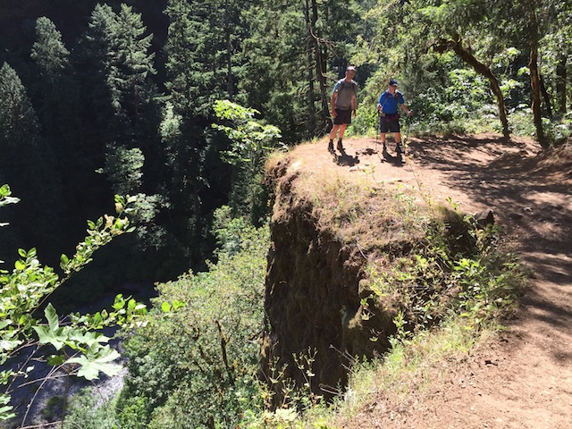 We started at a smart pace going up the hills.  It has some interesting paths along cliffs.  None of us are particularly fond of edges, but they did provide hand-rails when it was particularly steep.  We stopped to get some photos at various spots, but unfortunately no photos can capture the beauty, grandeur, and scale of the trail, terrain, and particularly of the waterfalls.