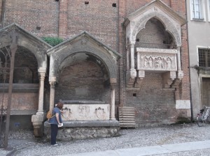 Some fascinating history is the Scaligeri family which is much like the better known Medici family. The Scaligeri family palaces and tombs are spotted throughout the city. They recently discovered that the initial leader who called himself Cangrande was actually poisoned shortly after completing a key battle/siege. Now his nephew is suspected. Seems like many of the Scaligeri were assassinated by family members seeking control and this may have been the first. Incidentally Cangrade means big dog and apparently comes from overhearing stories from Marco Polo about Ghengis Kahn.