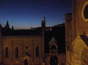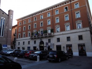 We are staying at the Hotel Due Torri which is right next to one of the nicest churches in a beautiful setting a short walk from everything. We love the hotel and the service.