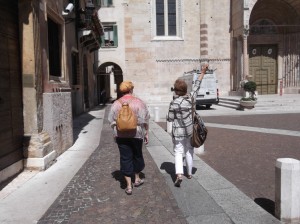 BTW the main tourist attraction is Juliet’s house as there is strong belief that the person or persons who wrote Shakespeare’s play Romeo and Juliet based it on two feuding families in Verona with slightly modified names. There is no documented proof, but many people stop by to visit. One tradition is to stroke the breast of the Juliet’s bronze statue which will bring the stroker luck in love. Nancy says she has more luck than she can handle and declined to do any stroking.