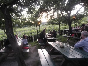 We went to one near Peter’s house called Weinhoff Zimmermann. It had about 50 picnic tables situated alongside the tavern/deli and adjacent to the vineyards. It was quite a bucolic setting. We had young wine and plates and plates of Austrian/German/et al goodies. We were stuffed, but it was good.