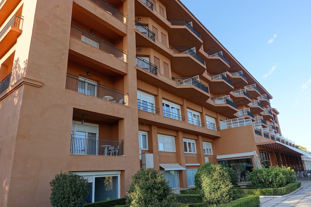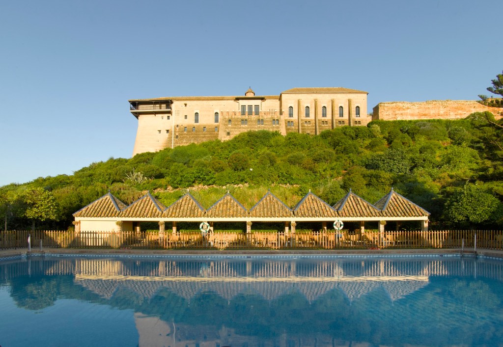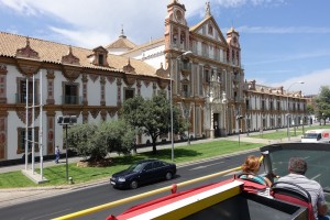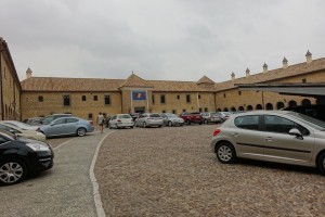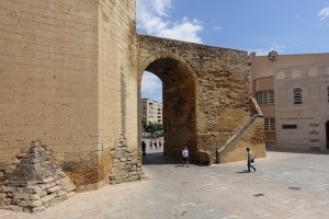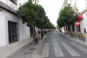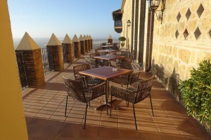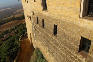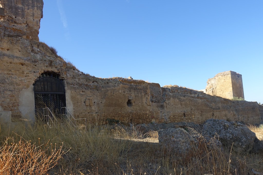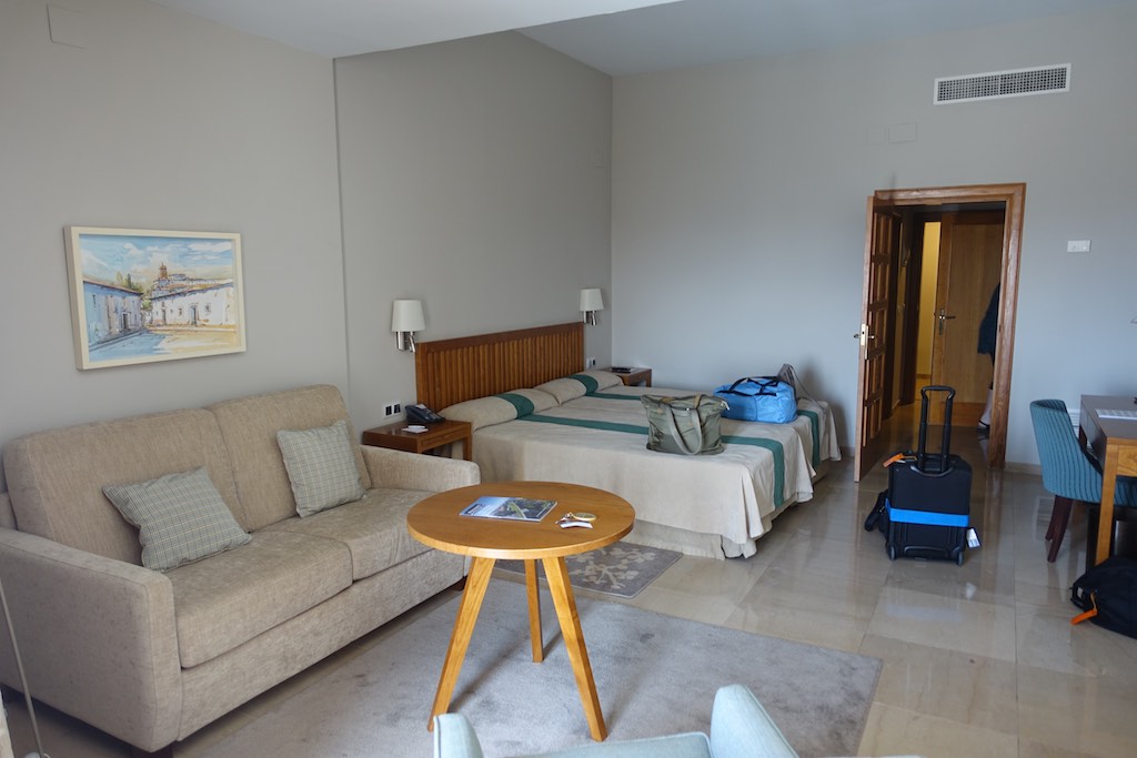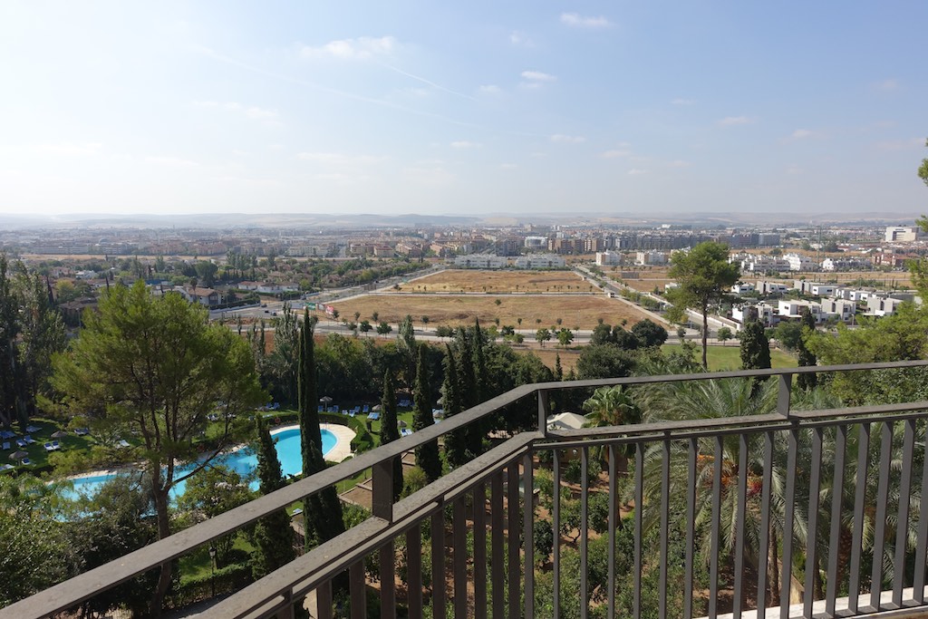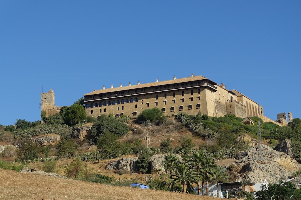 We drive past Seville and straight to the Parador 25km outside of town in a small town called Carmona (Parador de Carmona). This is the most picturesque ancient setting for a Parador yet. It is amongst the alcazar (“fort”) ruins where the walls of the ruins make up some of the walls and enclose the car park. Fitting into the car park is through a narrow arch cut into the wall. The Parador itself is perched on the edge of hill commanding a view of the surrounding countryside. We upgraded our rooms for 10 Euros to get a view.