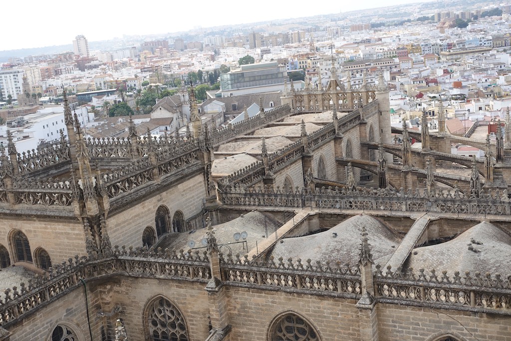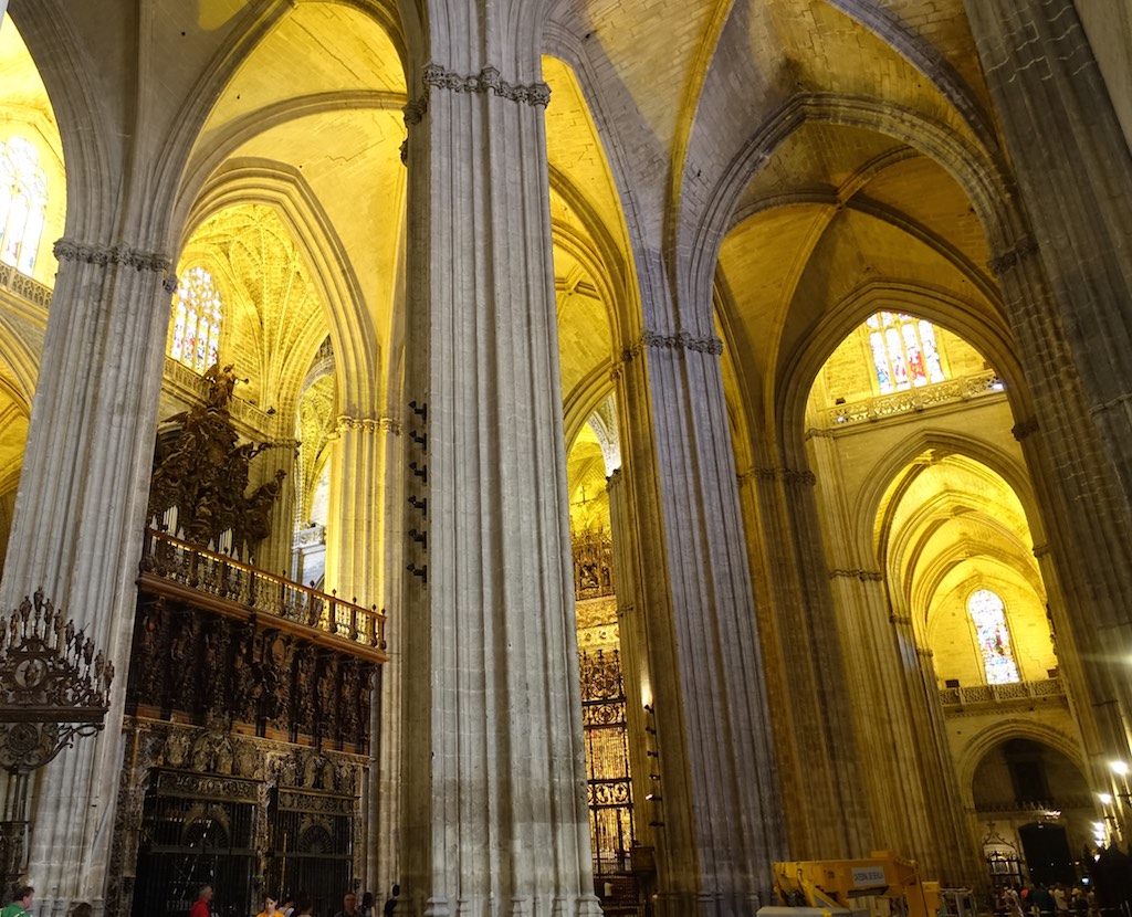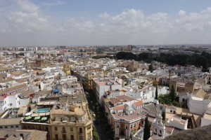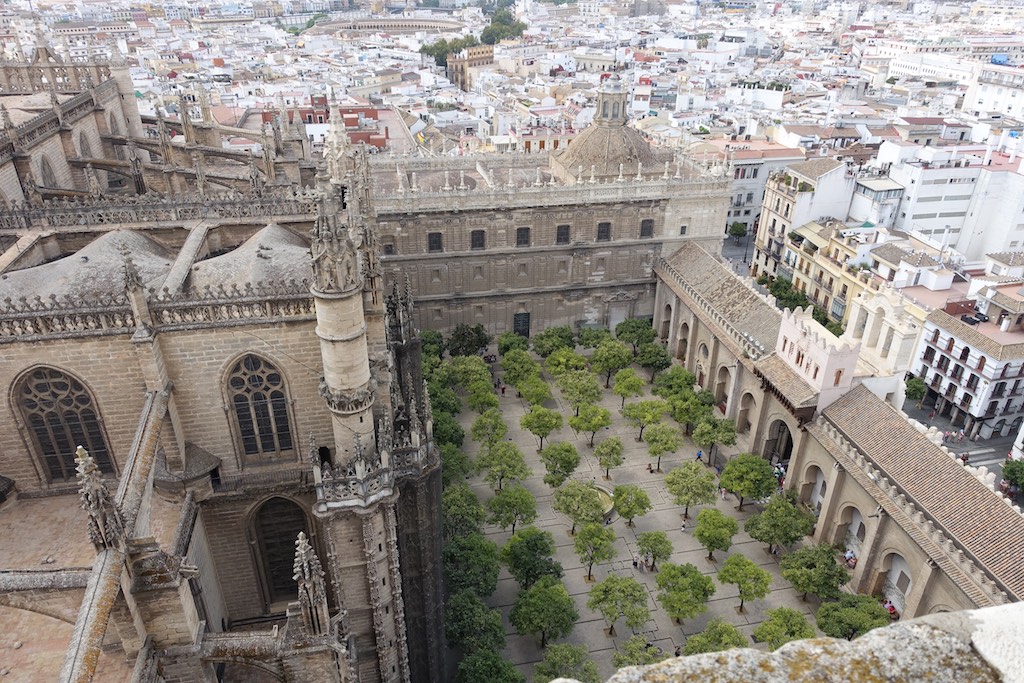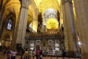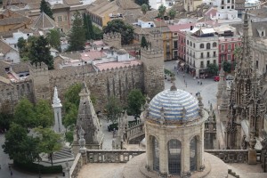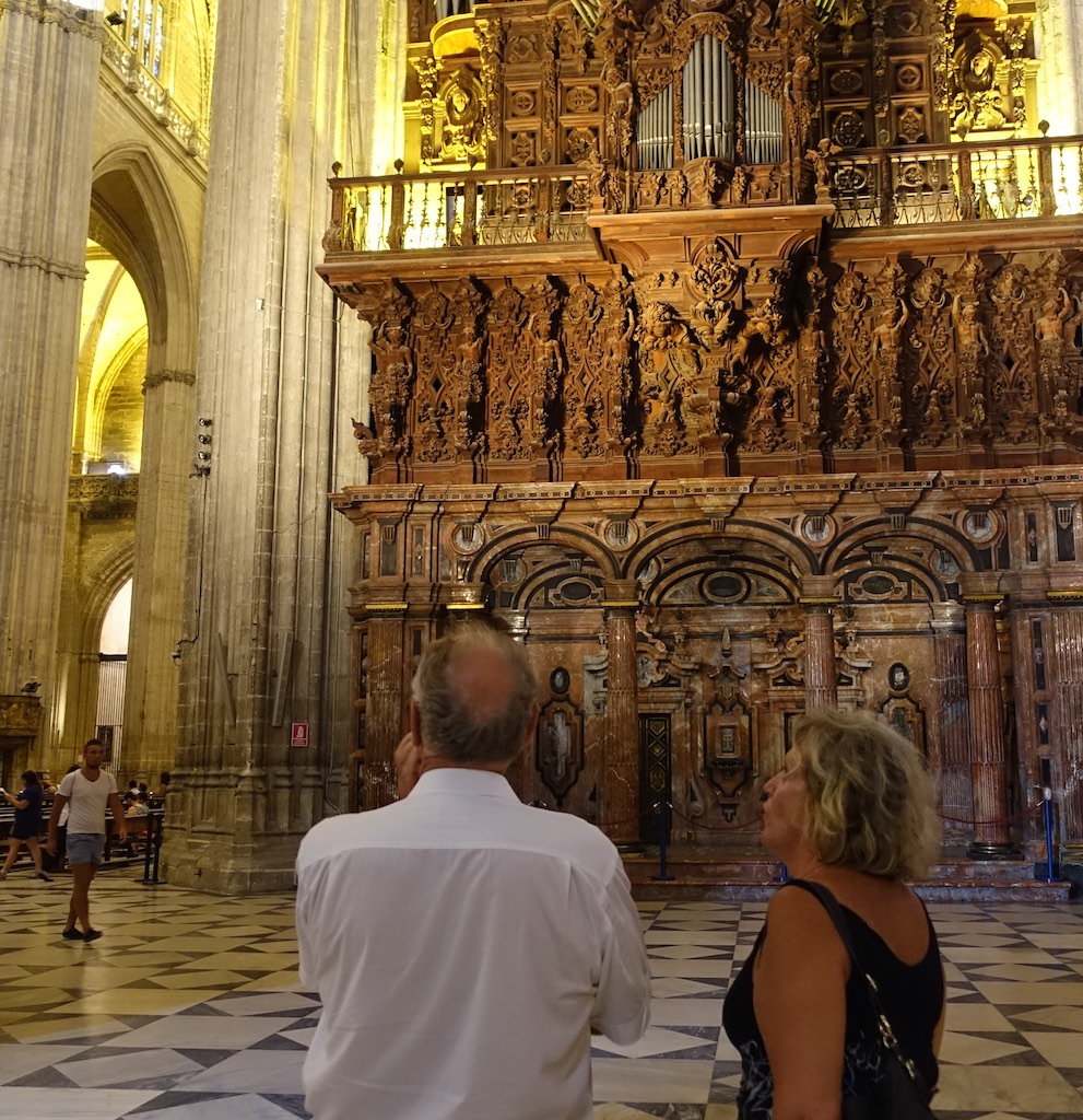 The main attraction of Seville is the Seville Cathedral, which is the largest one in Spain (perhaps in the gothic style … not sure about the modifiers). It has an amazing collection of art, treasures, and his huge. Nancy and I walk up the Geralda Tower which is 34 flights of walking (no stairs) so the mules could walk up. It was quite the commitment in exercise.