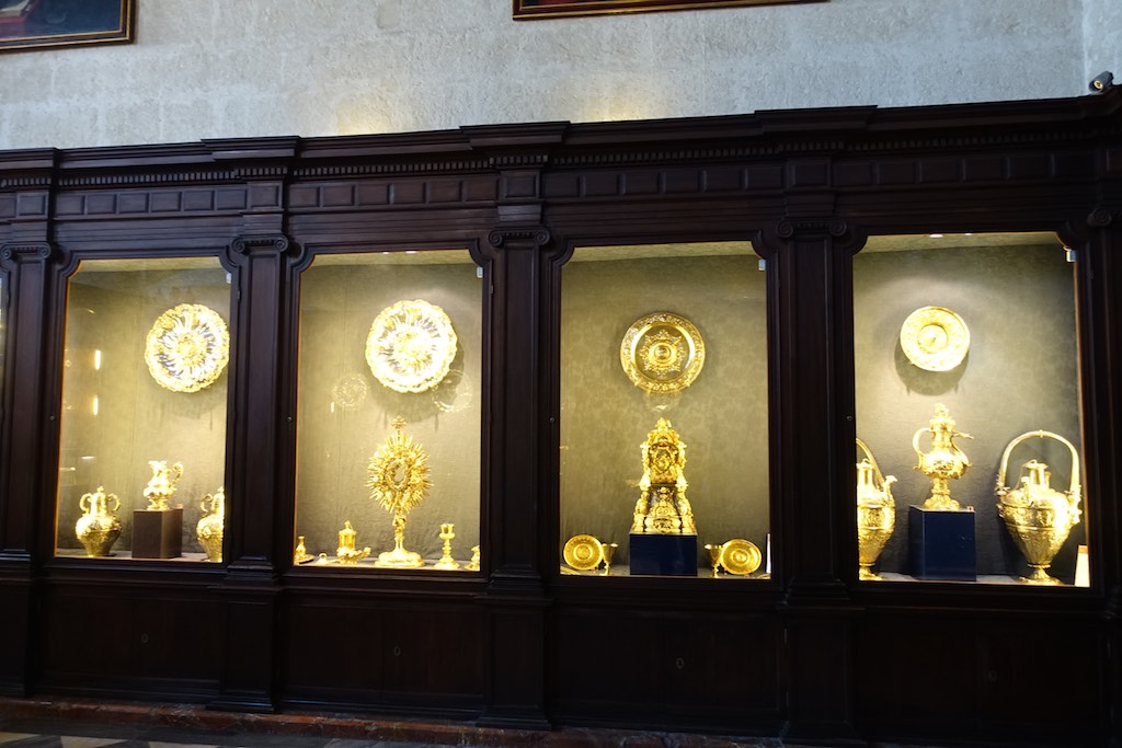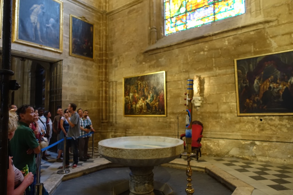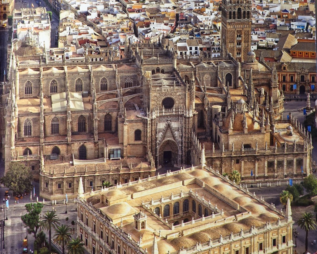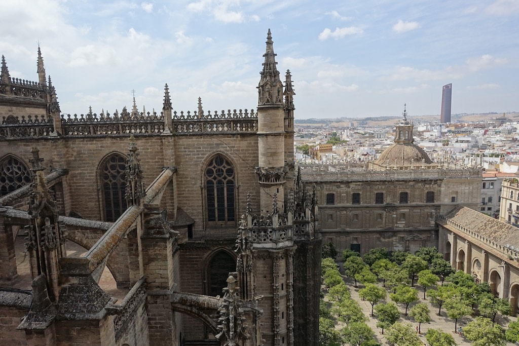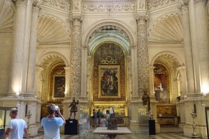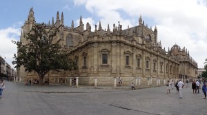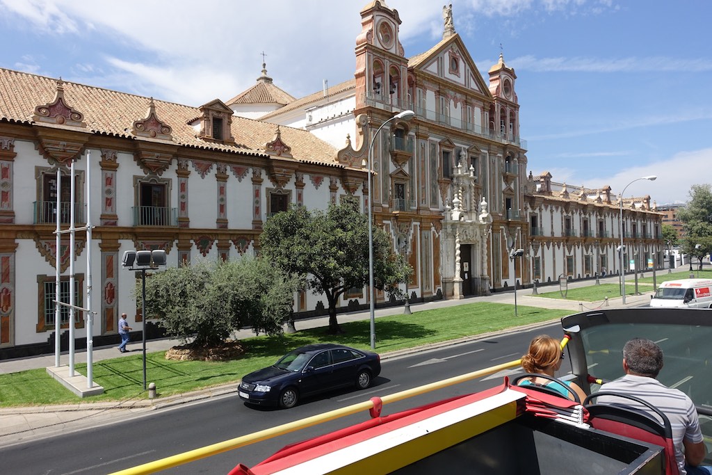 The main attraction of Seville is the Seville Cathedral, which is the largest one in Spain (perhaps in the gothic style … not sure about the modifiers). It has an amazing collection of art, treasures, and his huge. Nancy and I walk up the Geralda Tower which is 34 flights of walking (no stairs) so the mules could walk up. It was quite the commitment in exercise.