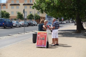 We drive into town with the GPS which directs us to a filled parking lot. Then we spot a slot on the street right in the midst of the attractions. It is 2 hour parking but as we go to pay, if you read the Spanish it says that there is free parking in August. So we don’t pay and leave the car until late in the evening with no consequences. We’re lucky again.
