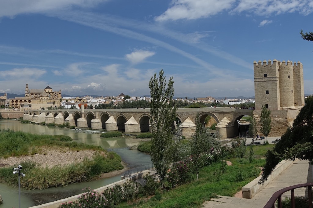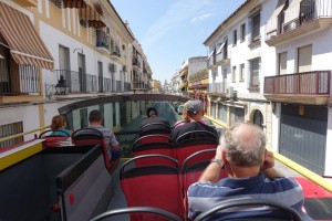 The initial tour bus pickup point is with a great view of the Visit the Mosque-Cathedral of Cordoba or the Mezquita of Cordoba. We can take pictures of the Roman gate and restored bridge over the river. The river used to be navigable to to the Mediterranean but is now silted up.