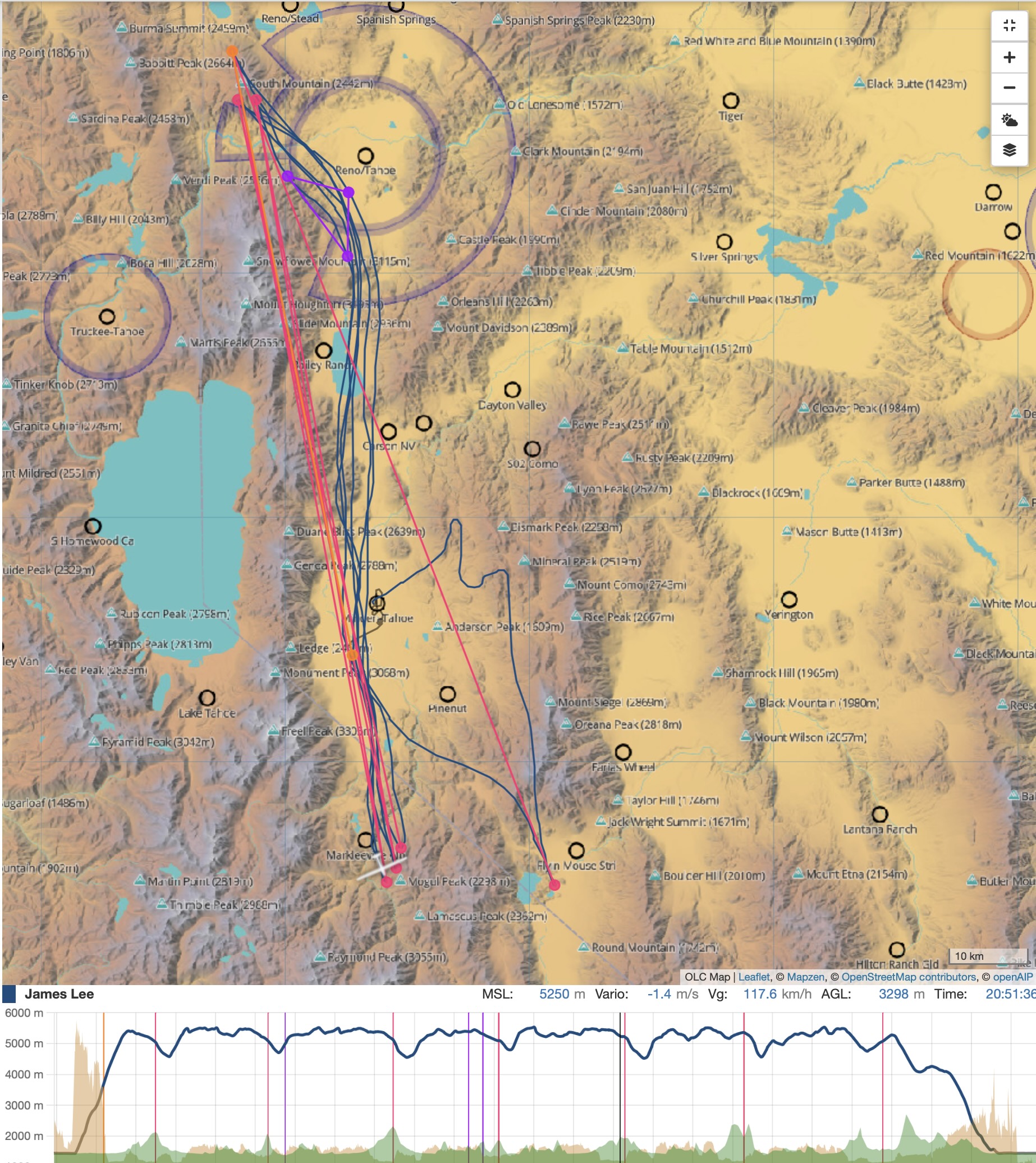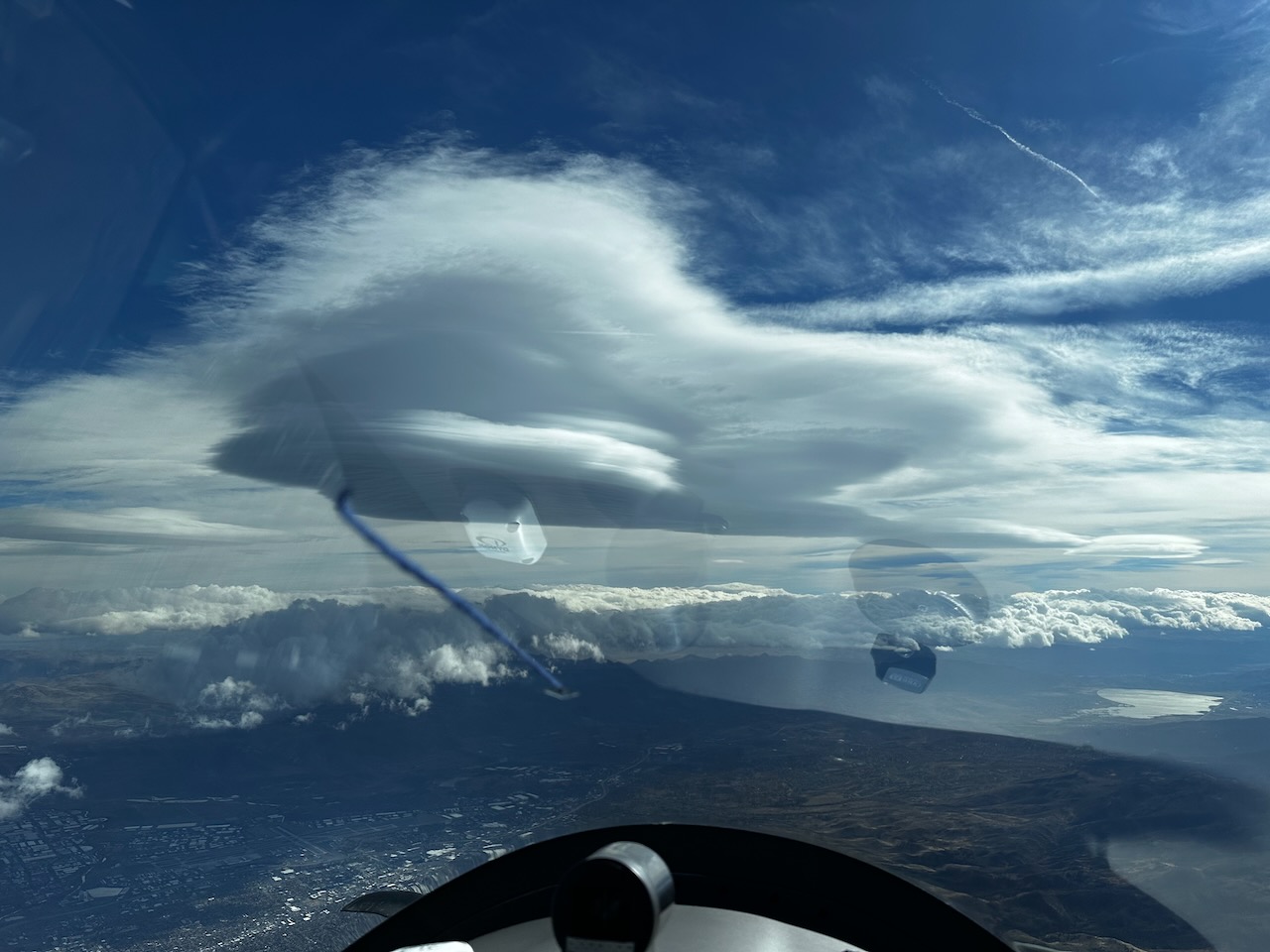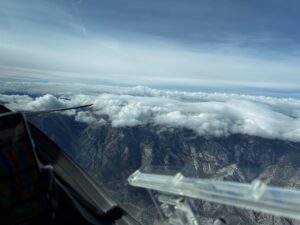 On our flight classic conditions set up on a nearby stretch of the Sierra’s that allowed us to fly over 600 km.  We were blessed with no rotor turbulence, which I am told is unusual.