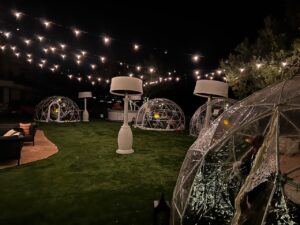 • The most outstanding meal was at The Village @ Skytop.  It was a dome that fit 4 people, had a heater, had a good view, and was a gourmet chef’s table type of meal.  It sprinkled rain on the plastic overhead to add to the ambiance.