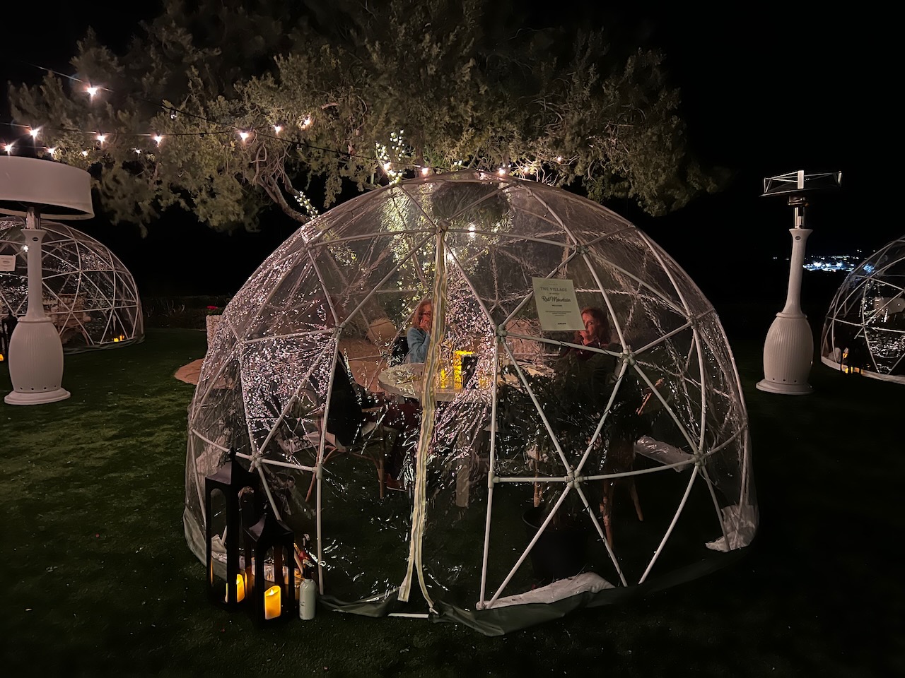 • The most outstanding meal was at The Village @ Skytop.  It was a dome that fit 4 people, had a heater, had a good view, and was a gourmet chef’s table type of meal.  It sprinkled rain on the plastic overhead to add to the ambiance.